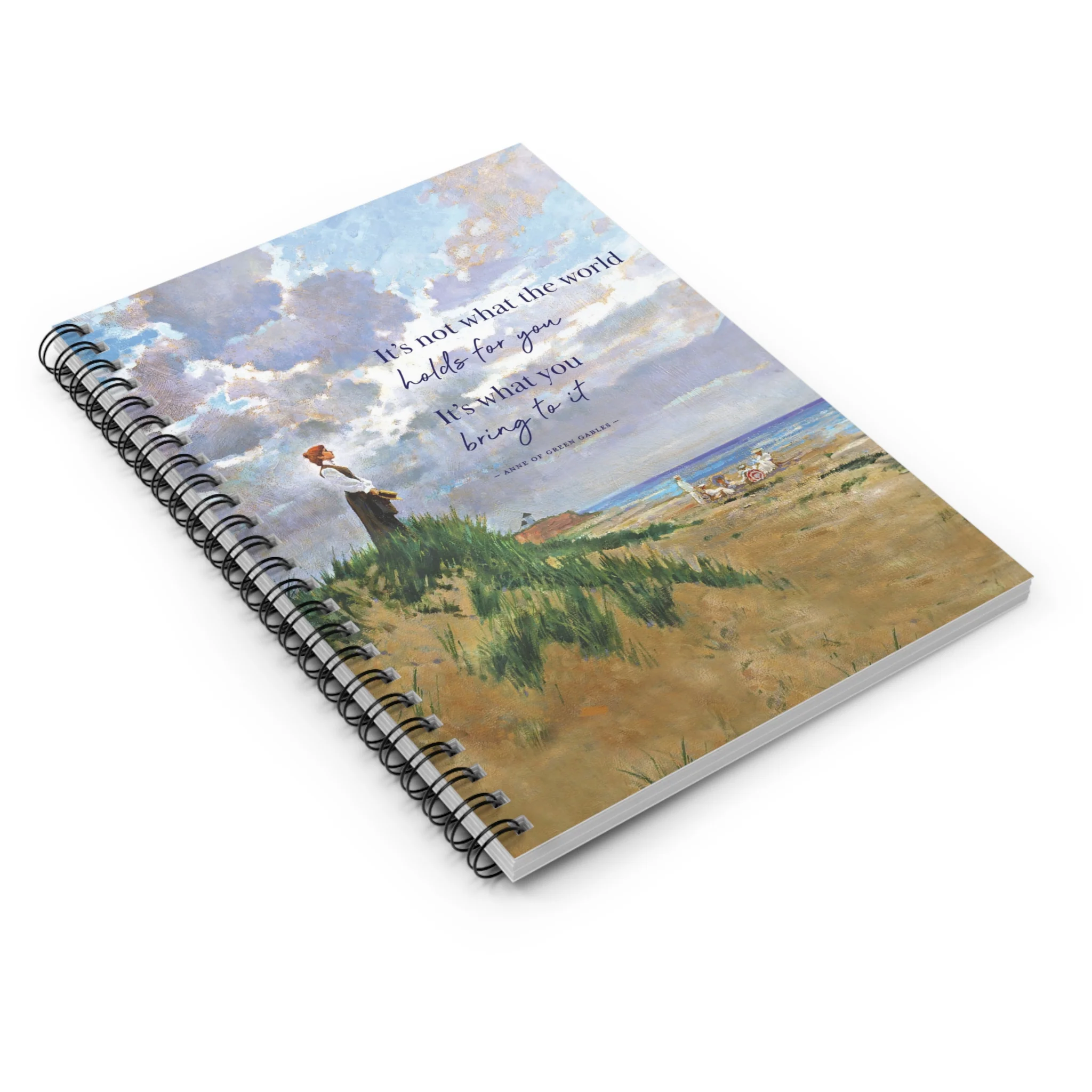 Shopping lists, school notes, or poems - this spiral notebook with ruled line paper is a perfect companion in everyday life. Featuring our exclusive What The World Holds Design.